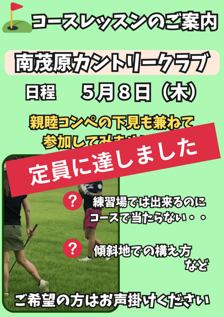 ⛳️コースレッスンのお知らせ 2025年3月27日 最終更新日時 : 2025年4月23日 megu-golf 5月8日(木)南茂原カントリークラブでコースレッスンを行います。下見も兼ねて是非参加してみませんか? ご希望の方はお声掛けくださいね。朝ニューウィングに集合して私が運転していく予定です😄 いいね:いいね 読み込み中…